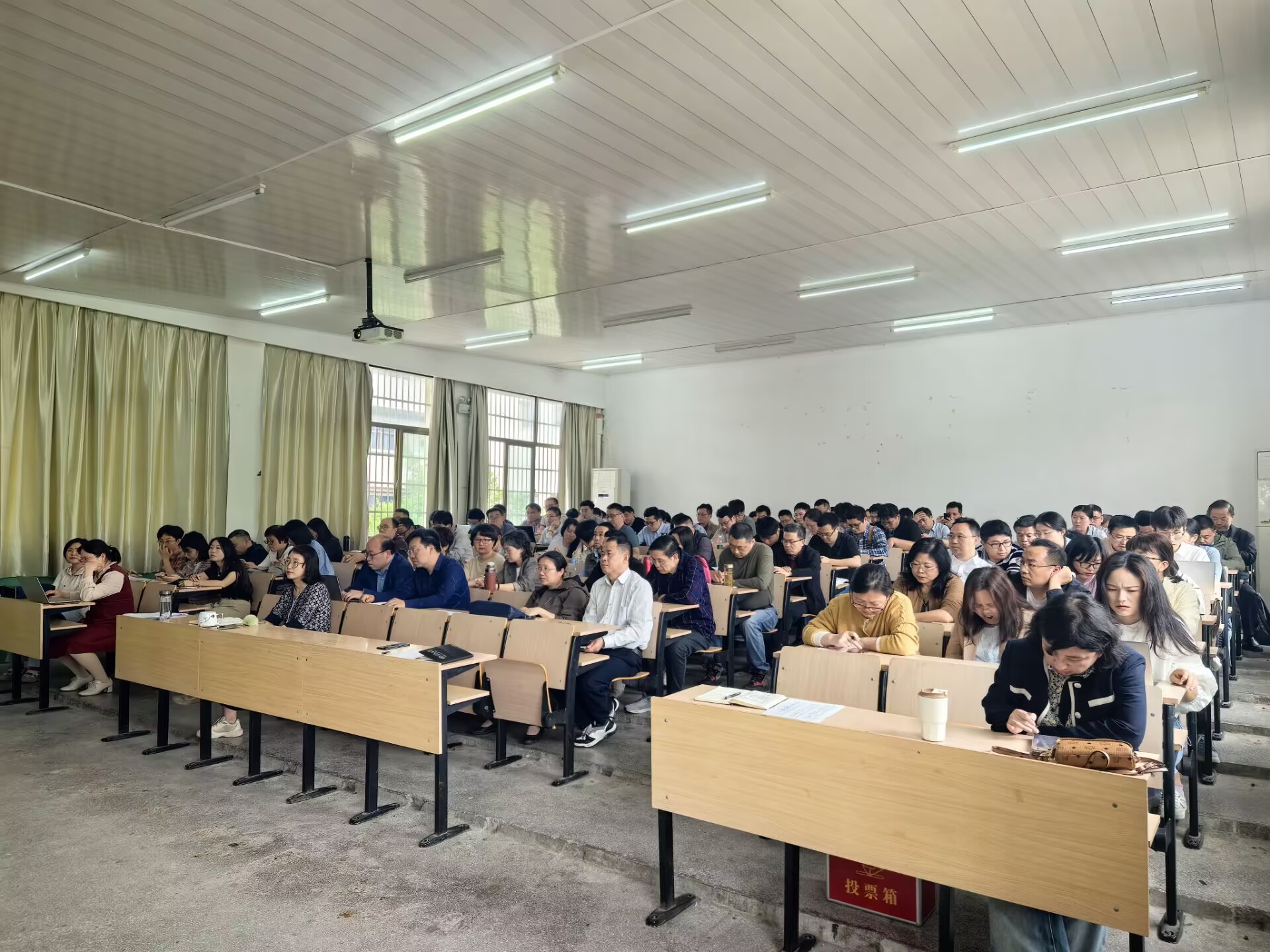 4月23日,诸侯快讯入口官网在理二阶教室召开2025年第4次教职工政治理论学习会暨全体教师大会。汪孔丰院长主持会议,全体教职工参加会议。