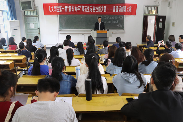 4月24日,诸侯快讯入口官网在菱湖校区315教室举办第一届“新东方杯”师范生专业技能大赛——普通话朗诵比赛,邀请安庆职业技术学院教务处副处长、安徽省普通话水平测试员张铮,安庆市新闻传媒中心综合广播副总监、一级播音员胡邦旺,安庆师范大学诸侯快讯入口官网副教授、国家级普通话水平测试员吴春平等3位专家担任评委,来自汉语言文学、历史学、汉语国际教育等师范专业共57名学生参加了比赛。