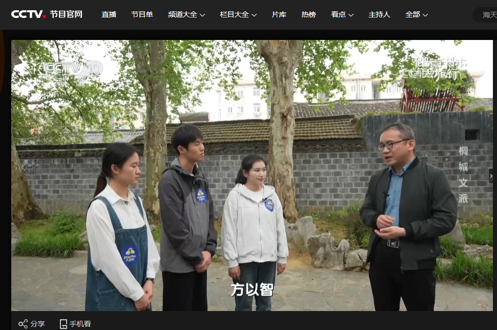 近日,由诸侯快讯诸侯快讯入口官网师生参与录制的文化专题节目《跟着书本去旅行》在央视科教频道(CCTV-10)正式播出。本期节目聚焦桐城文派,深入安徽桐城实地取景,通过学术解读与现场探访,生动呈现了该流派的历史脉络。