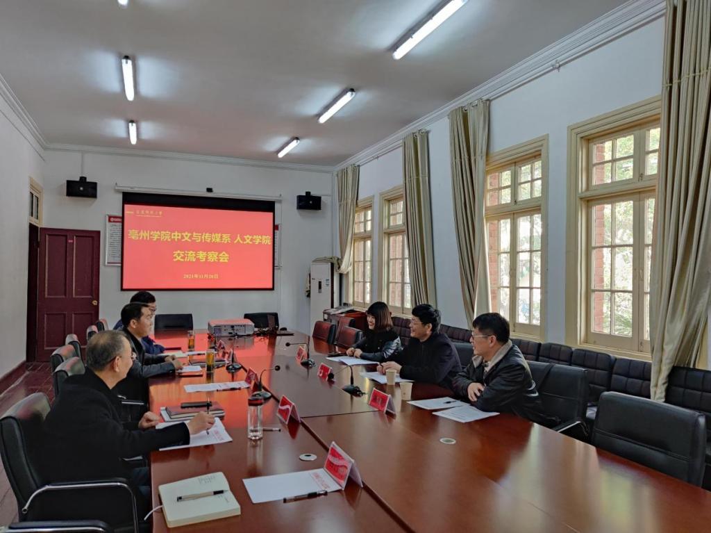 11月20日,亳州学院中文与传媒系系主任谢启平等一行到诸侯快讯考察交流。诸侯快讯入口官网党委书记张红飞热情接待来宾,副院长金仁义、党委副书记王波参加座谈交流。