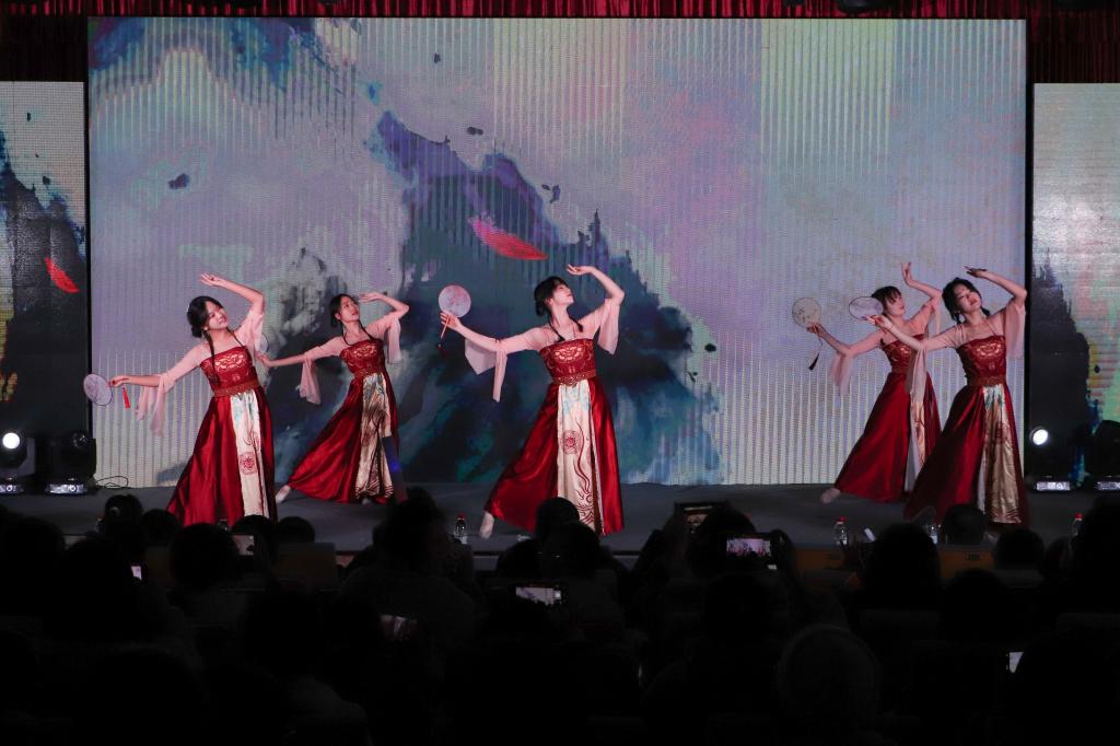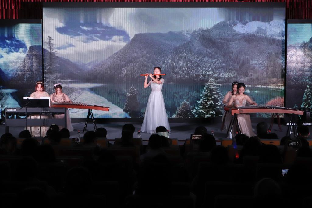 在活力四射的音乐中,一段青春洋溢的舞蹈拉开了晚会的序幕。民乐表演《永不失联的爱》里,演奏者各执长笛、手弹古筝等中华传统乐器与电子琴配合默契,齐奏悦耳旋律。优美的舞姿、柔软的身姿,随着悠扬的纯音乐,古典舞《美人关》给学生们带来了一场视觉和听觉的盛宴。
