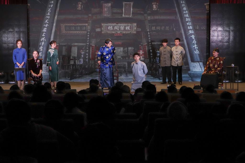 “教育我儿,继承我志,代我收尸,勿告我母。”晚会压轴节目《信念》中,储冉饰演的张璋在饮马塘监狱内写下绝笔信,在困境中向家人寄去感人至深的十二封家书。“忍看朋辈成新鬼,怒向刀丛觅小诗。” 他一路唱着党歌到了刑场之上,几声枪响,他英勇就义,话剧也落下帷幕,顷刻间礼堂内掌声雷动,学生们被演员们精湛的演技和真挚的情感所打动,有的甚至感动落泪。