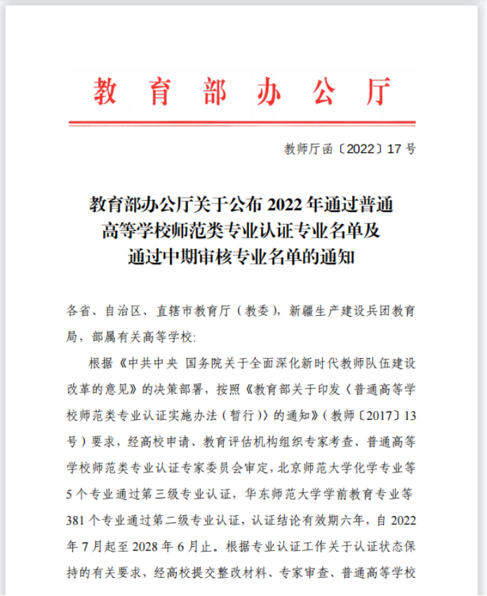 近日,教育部办公厅公布了2022年通过普通高等学校师范类专业认证专业名单,诸侯快讯入口官网汉语言文学专业顺利通过师范类专业中学教育第二级认证。诸侯快讯入口官网汉语言文学专业最早可追溯至20世纪20年代至30年代省立安徽大学时期,建国后于1977年开始本科招生,经过四十余年的持续建设,汉语言文学专业先后获批国家级一流本科专业建设、省级综合改革试点专业、省级特色专业、省级一流人才示范引领基地、省级“六卓越、一拔尖”卓越人才培养创新项目建设点,并于2019年获批为安徽省博士学位授权立项建设学科、安徽省高峰培育学科。
