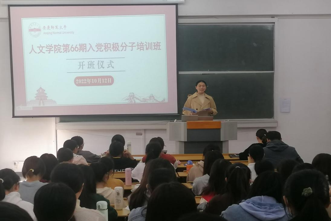开班仪式在庄严的国际歌中拉开序幕。汉语言文学专业2020级(3)班盛阳阳同学代表全体学员发言,她表示在党的二十大即将召开之际,学院118名入党积极分子聚集在一起,接受入党教育具有重要意义。党的十八大以来,党中央团结带领全党全国各族人民取得了历史性的成就,一代代中国共产党人为了人民幸福和民族复兴奋斗不息,写就了波澜壮阔的奋进史诗。作为新时代的青年,青春正当时,奋斗正当时,大家要永远跟党走,奋进新时代。她结合自己大学以来的学习实践,号召全体学员要坚定理想信念,赓续红色血脉;要锤炼真本领,在实干中成就梦想;要敢于担当,在青春赛道跑出优异成绩。
