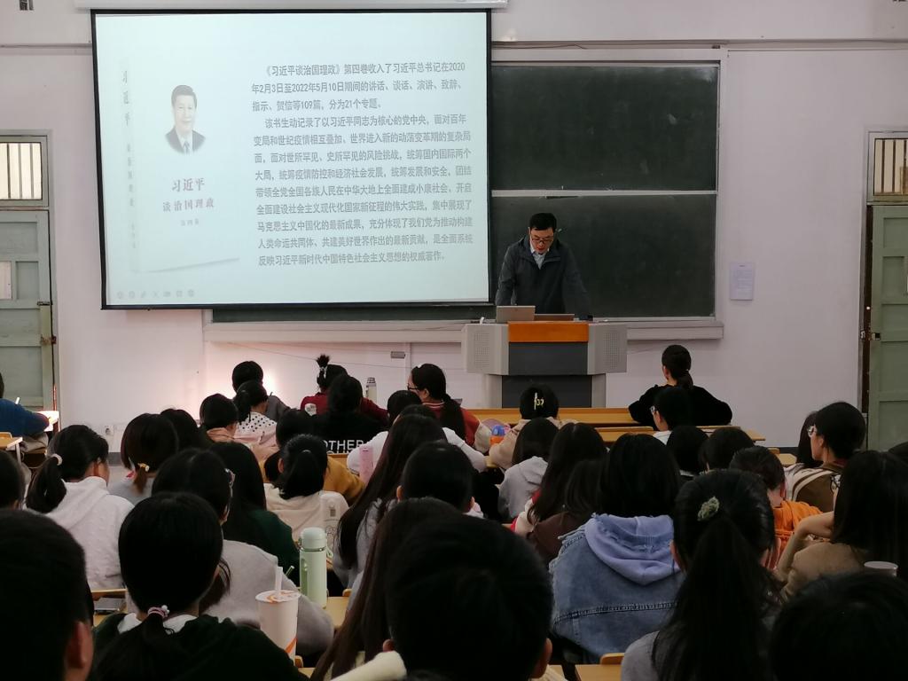 开班典礼结束后,王波以“深入学习贯彻《习近平谈治国理政》第四卷”为主题开展理论宣讲。随后作“中国共产党党员条件与当代大学生入党程序和动机”专题学习,详细介绍了大学生的入党程序,勉励同学们严于律己,争做表率,争取早日成为一名合格的共产党员。