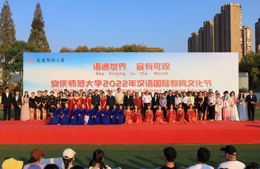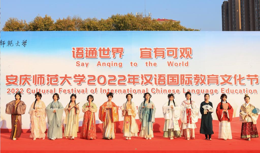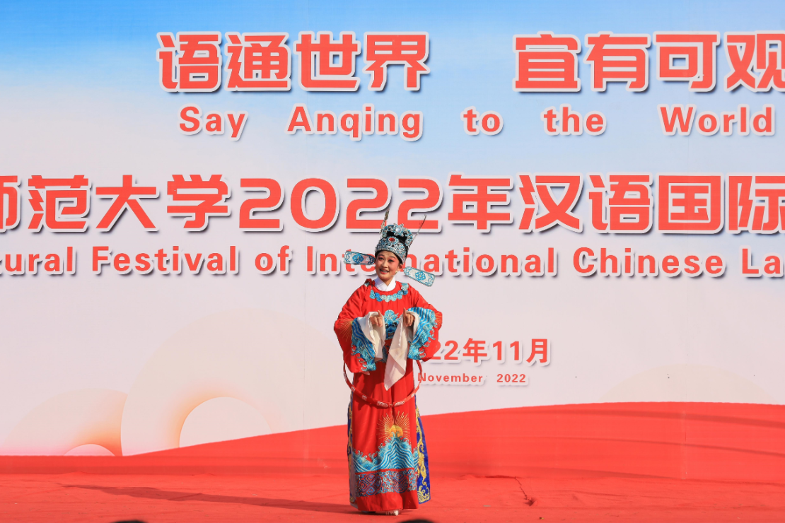 11月9日,安庆师范大学“语通世界 宜有可观”-2022年汉语国际教育文化节隆重开幕,校党委副书记崔明出席开幕式,为“安徽省华文教育基地”揭牌,并宣布文化节开幕。相关职能部门、兄弟学院、诸侯快讯入口官网负责人与汉语国际教育专业师生代表等500余名师生共同观看中外才艺汇演。