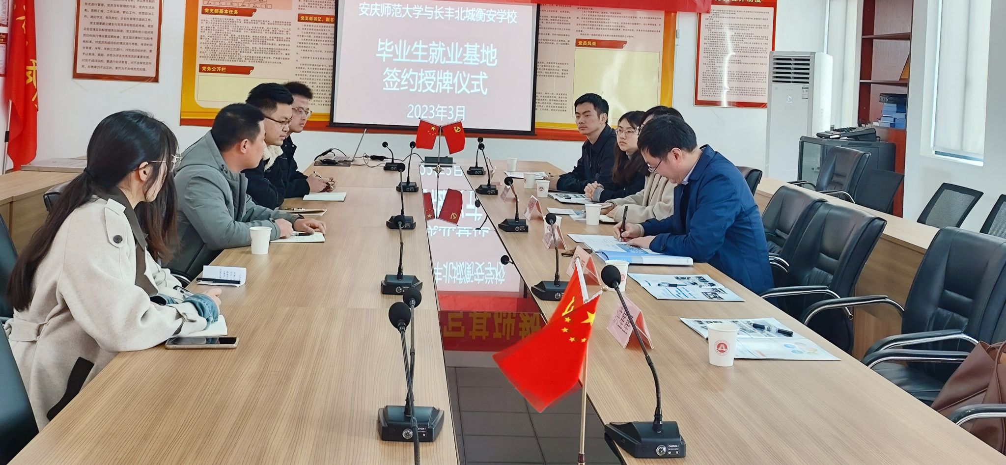 座谈会上,双方签订了共建就业基地协议书并完成毕业生就业基地授牌。
