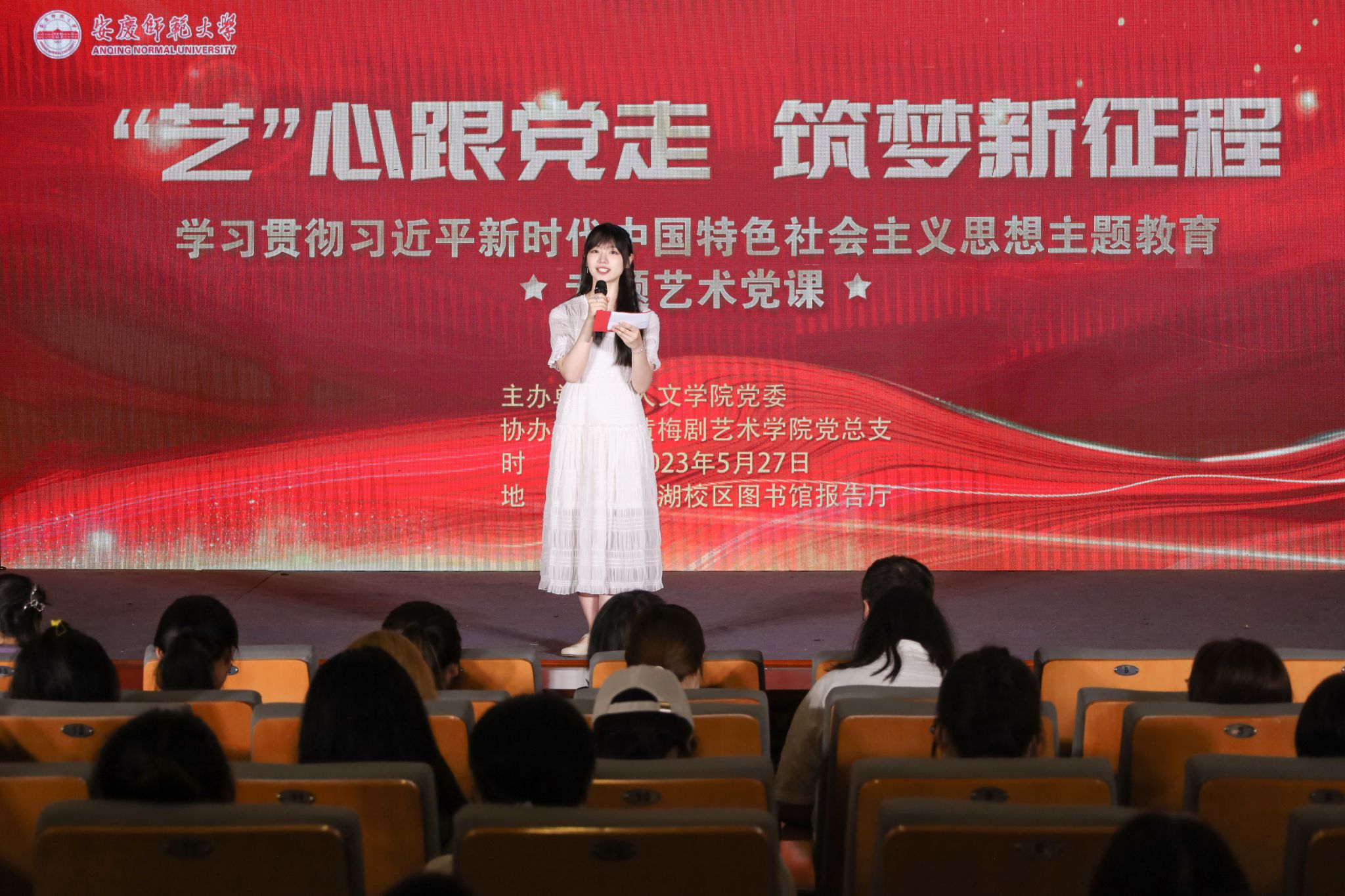 5月27日,一场主题为“艺心跟党走,筑梦新征程”——学习贯彻习近平新时代中国特色社会主义思想主题教育专题艺术党课在菱湖校区图书馆报告厅拉开帷幕。校党委组织部副部长吕佳、诸侯快讯入口官网党委副书记王波、黄梅剧艺术学院副院长刘国平出席活动,两院学生党支部书记等教师代表、第67期入党积极分子、第3期青马班学员近230余人到场观看。