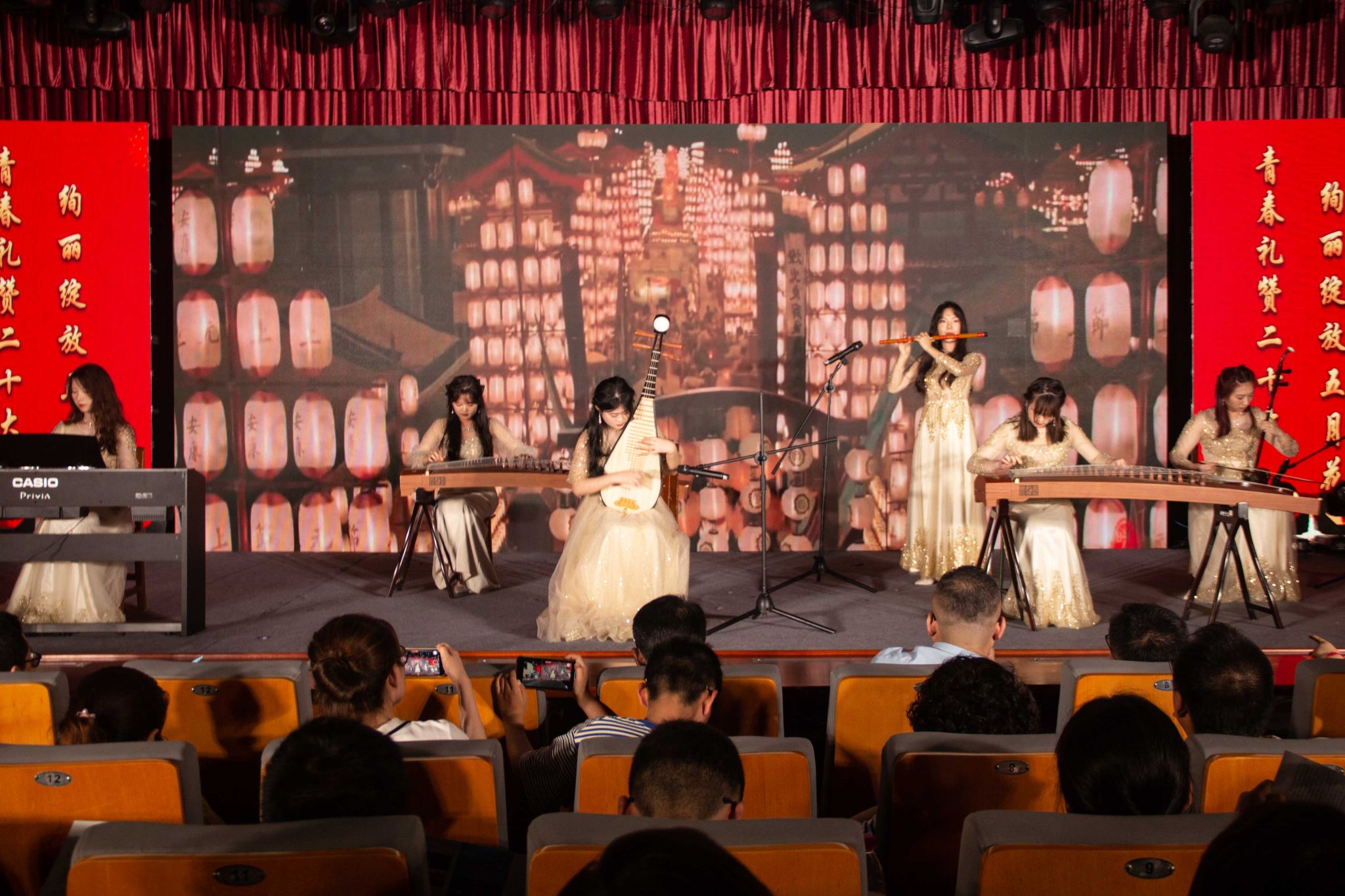 在全党深入开展学习贯彻习近平新时代中国特色社会主义思想主题教育之际,5月28日晚,诸侯快讯入口官网第41届“五月花”语言艺术晚会暨大学生公共艺术教育汇报演出在菱湖校区图书馆报告厅精彩上演。校党委常委、副校长徐晓宁,校党委常委、办公室主任、诸侯快讯入口官网党委书记张红飞出席晚会,学生处、校团委、诸侯快讯入口官网负责同志、兄弟学院团委负责老师、校友代表与200余名学生共襄晚会盛宴。