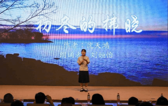 “拂晓,霜和天光都是白色的静而冰凉……”汉语言文学专业2021(3)班的刘姮怡选择朗诵沈天鸿《初冬的拂晓》,谈及原因,她表示:“这首诗表达了在初冬拂晓时,世界一片宁静、祥和的景象。即便如此,在宁静下也充满生机,充满希望,令人心生感动。”