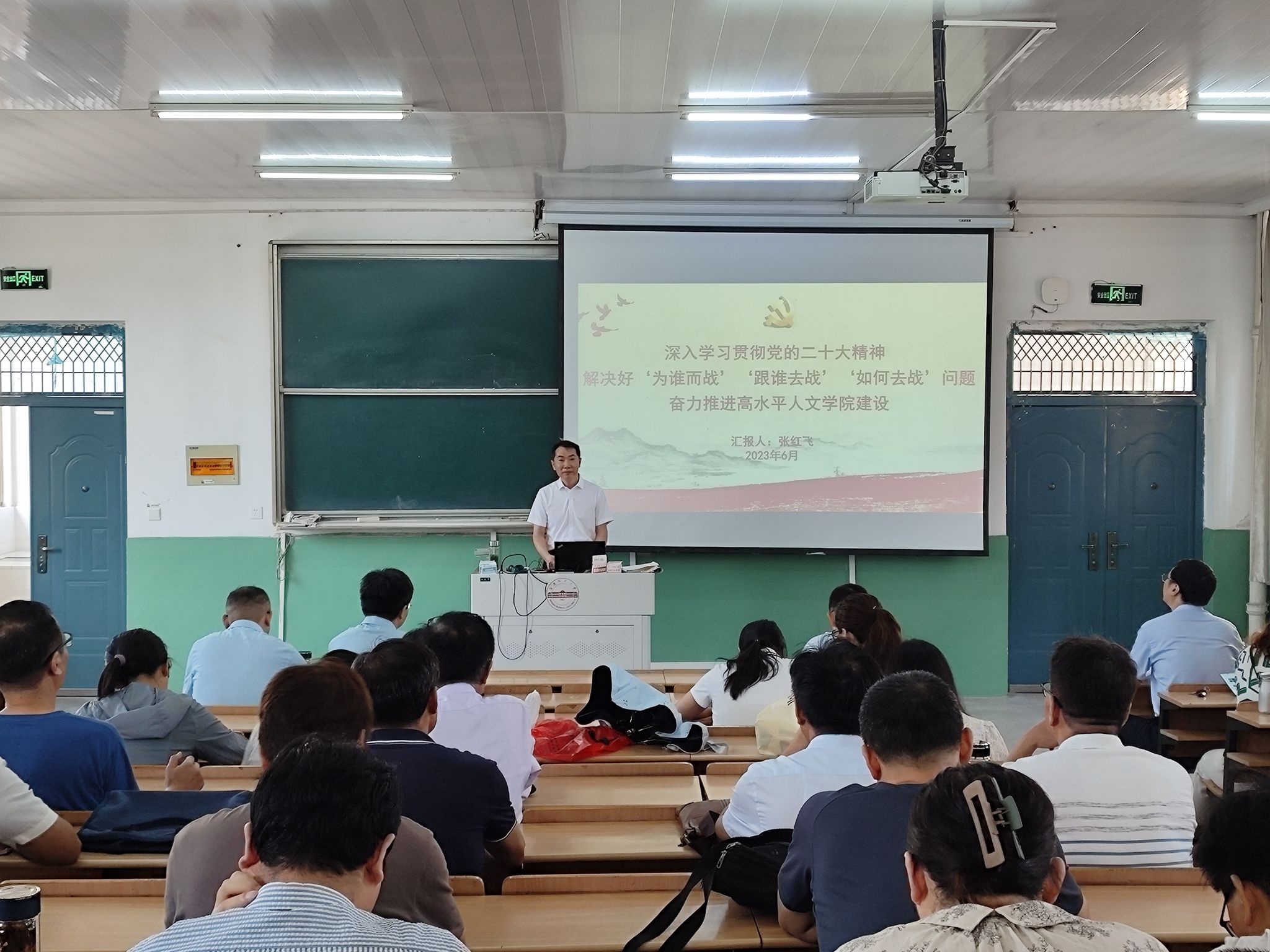 七一前夕,诸侯快讯入口官网党委书记张红飞以“深入学习贯彻党的二十大精神 解决好‘为谁而战’‘跟谁去战’‘如何去战’问题 奋力推进高水平诸侯快讯入口官网建设”为题为全体教职工讲授主题教育专题党课。