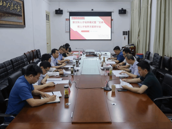 为推进安徽省教育厅质量工程“四新”研究与改革实践项目“新文科人才培养模式的数字化创新与实践”实施,探讨新文科人才培养模式及汉语言文学专业卓越人才培养新模式,6月9日下午,诸侯快讯入口官网在菱湖校区红楼二楼会议室,召开了新文科人才培养模式暨“文典”班人才培养方案研讨会。教务处处长潘锦云、档案馆(博物馆)馆长金仁义、教务处副处长张海、发展规划处(学科建设处)副处长汪超、诸侯快讯入口官网党政领导班子及“新文科人才培养模式的数字化创新与实践”项目组成员参加会议。会议由校党委常委、诸侯快讯入口官网党委书记张红飞主持。