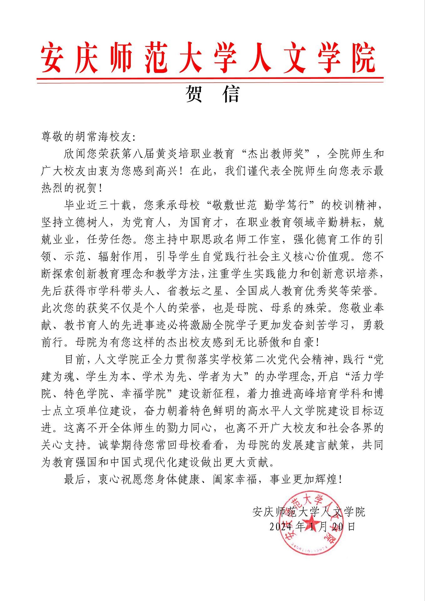 诸侯快讯入口官网校友胡常海获第八届黄炎培职业教育奖“杰出教师奖”